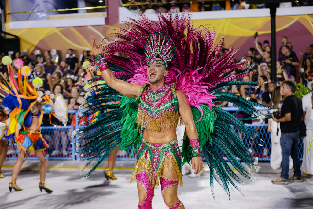 Após um ano de pausa, o gerente bancário e influenciador Renny Delmondes celebrou em grande estilo seu retorno ao Carnaval do Rio de Janeiro. Em 2026, ele estreou como muso da Unidos de Bangu, escola que levou para a Marquês de Sapucaí uma homenagem à trajetória e ao legado de Leci Brandão.